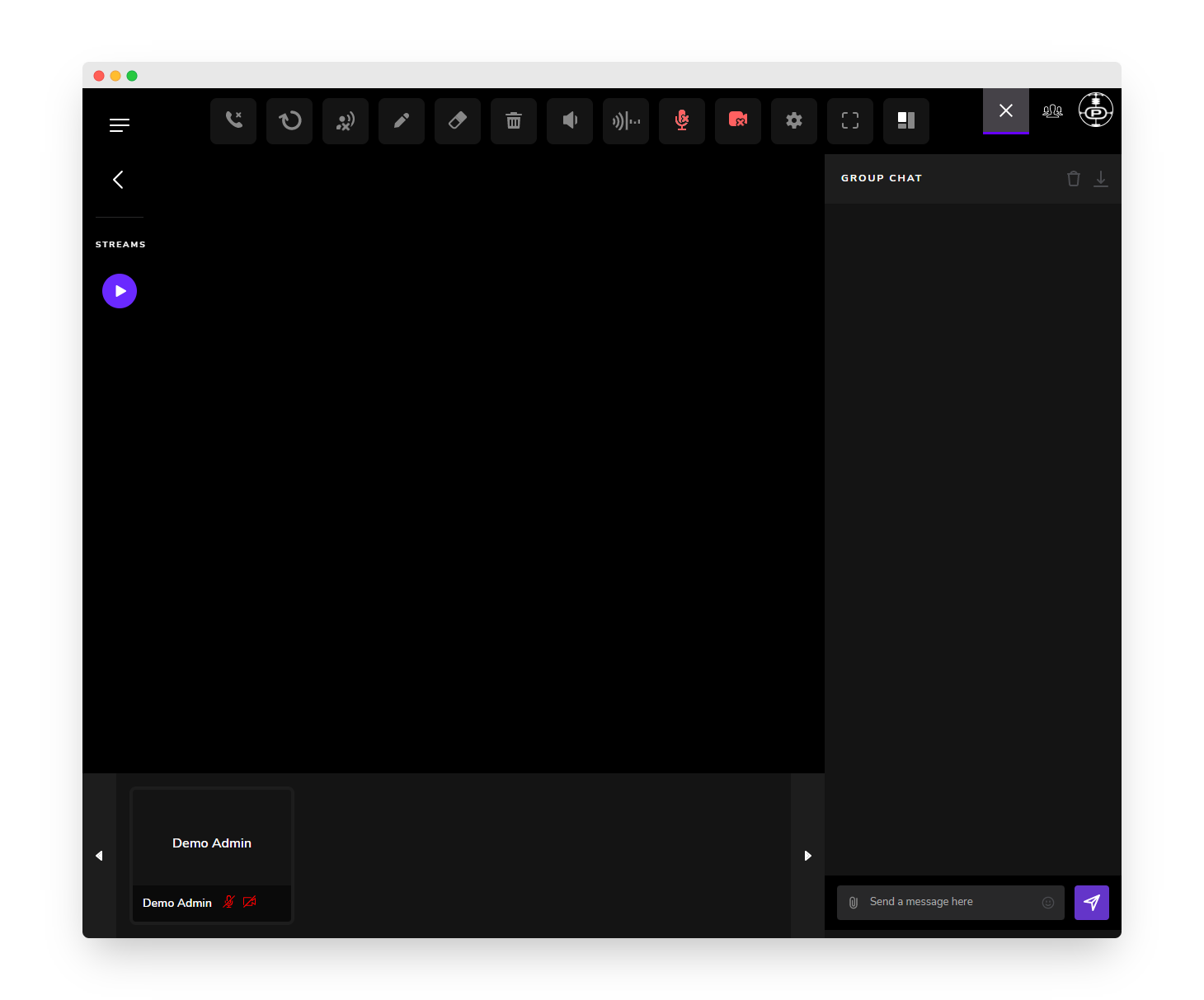 The show viewer is where all of the streams will be viewed. It includes controls to switch between streams, participating in streams via video, voice chat or text chat as well as interact with the published stream via drawn annotations.