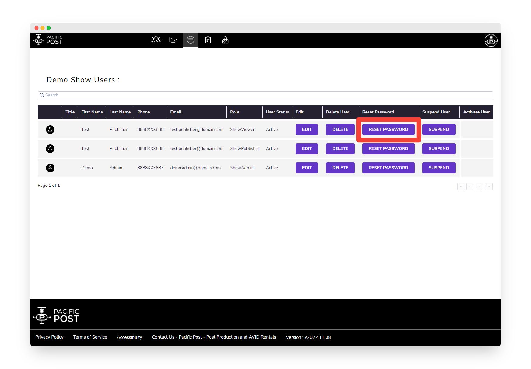 If any user on the show is unable to remember the password to their account, the **Show Admin** may initiate a password reset on their behalf from the Show Admin portal by using the following procedure: