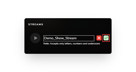 6. When you are satisfied with the new name of the stream, click the green check icon next to the box.